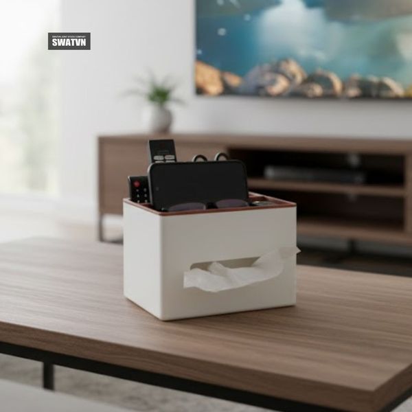 • Mẫu hộp đa năng: thiết kế tích hợp thêm các khay nhỏ để đựng kẹp giấy, ghim cài, bút highlight hoặc rãnh đỡ điện thoại, biến hộp khăn giấy thành một trạm tiện ích nhỏ gọn trên bàn làm việc.